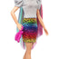 - Cepilla el pelo largo de color arcoíris de la muñeca Barbie a un lado para revelar un hermoso aspecto de arcoíris degradado A continuación, activa la función de cambio de color añadiendo agua fría en el lateral y mira cómo aparece un estampado de leopardo ¡Tan genial!