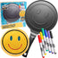 - Sartén grande redonda para panqueques de cara sonriente de 10 pulgadas. Decora tus propios panqueques con 6 marcadores comestibles incluidos en el juego