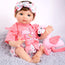 - Paquete: 1 muñeca realista de 56 cm, 1 exquisita caja de regalo, 1 traje (como en la imagen), 1 diadema de lazo, 1 almohadilla para pañales, 1 juguete de flamenco de felpa, 1 chupete magnético, 1 biberón, 1 certificado de nacimiento